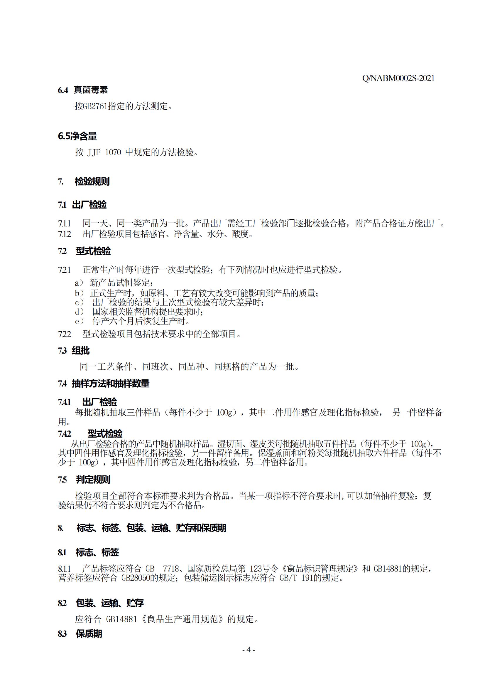 “企業標準Q/NABM0002S-2021”濕制粉類制成品